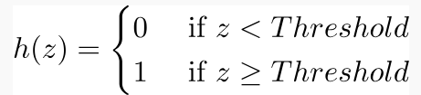 Di mana X adalah input, W adalah bobot untuk setiap neuron input, b adalah bias, dan h adalah fungsi langkah.