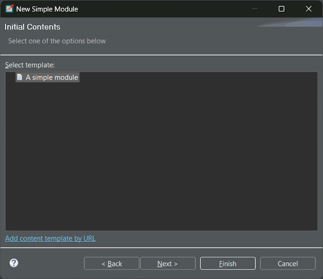 Jika sudah, pilihlah Modul apa saja yang ingin kamu pilih. Anda juga bisa menamai File Ned untuk Project Modul Anda, jika sudah klik "Next".Setelah itu, pilihlah Template yang tersedia dan klik "Finish".